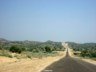 The Thar Desert is a large, arid region in the northwestern part of the Indian subcontinent and forms a natural boundary running along the border between India and Pakistan. With an area of more than 200,000 km2 (77,000 sq mi), it is the world's 9th largest subtropical desert.